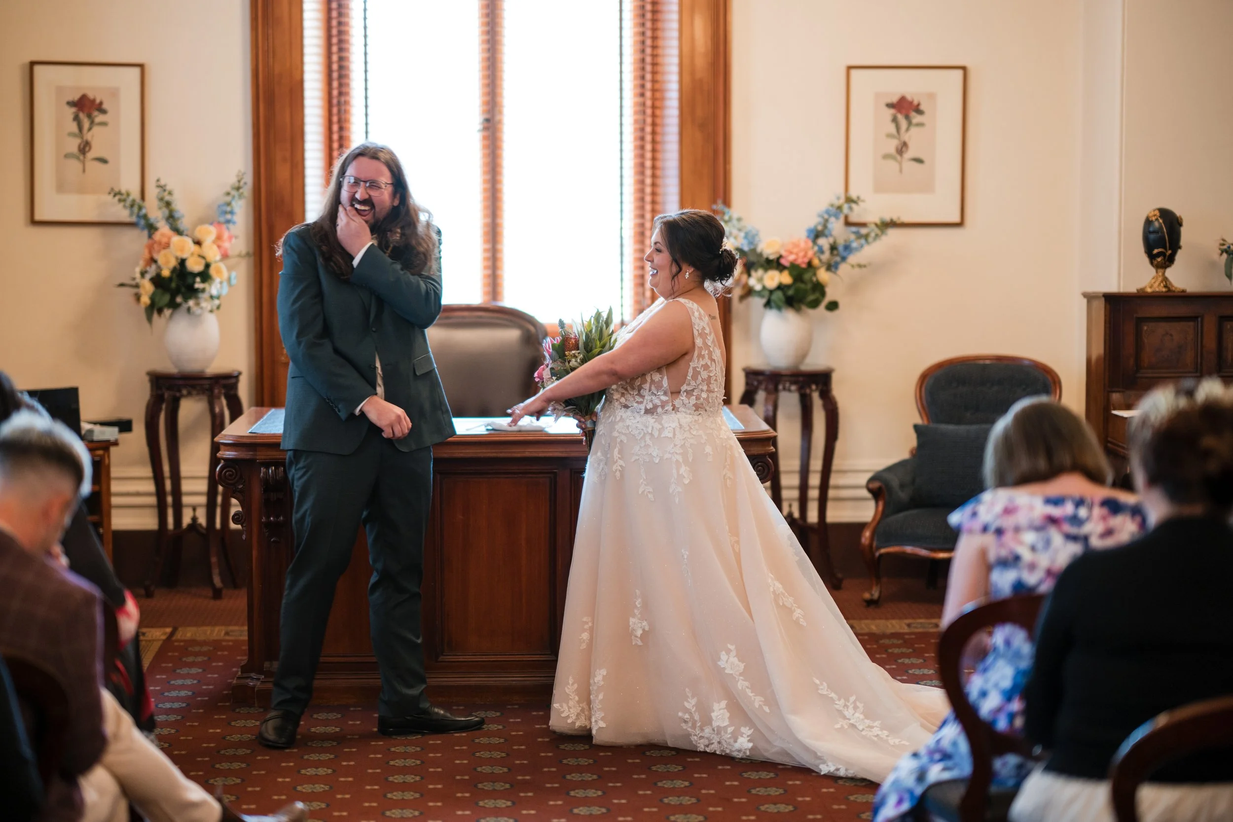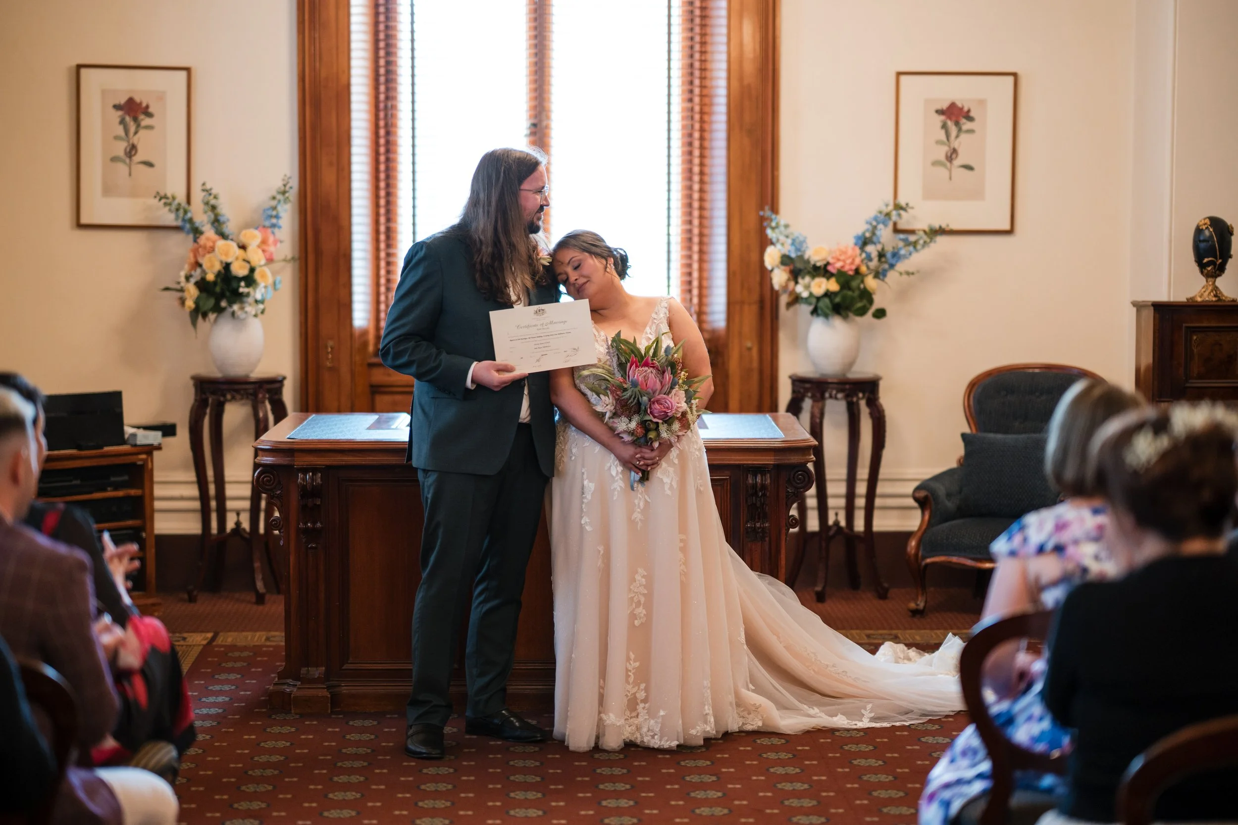 A beautiful celebration of love with the warm and easygoing couple, Ally & Jake, at the elegant Victorian Marriage Registry. Set in the heart of Melbourne, the heritage charm and classic architecture provided a timeless backdrop for their heartfelt vows. Their genuine connection and relaxed, joyful vibe made the day feel intimate, meaningful and effortlessly full of love.